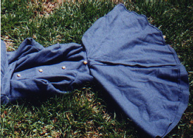 For all you Federal Reenactors (and you curious Confederates) out there, you may be wondering “how the heck did the original US soldiers carry those overcoats?” of course, you may not care, especially if you don’t have an overcoat. But for me, I wanted to know. A little digging turned up the information that the soldiers carried them rolled, and on top of their knapsacks. But, “how did they roll them?” you might pontificate. Well, I too pondered the same perplexity, and answers were not forthcoming. I could find no printed instructions left over from the war. I have since learned that there were a few reenactors out there who chose not to share this info, well, they have been punished. Fortunately, one of the studliest members of the 15th US/1st Fla modified the World War I overcoat rolling procedure and scored a breakthrough. So here are the steps for rolling the overcoat thanks to Matt Wright.