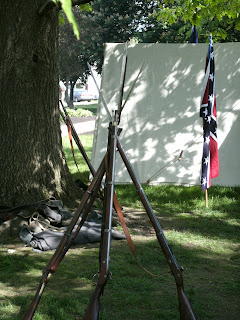 The first and biggest mistake of the event held at Sunbury , Ohio –hometown of General William Rosecrans–was to schedule the event opposite two larger events (Conner Prairie, Indiana, and Sharon Woods in Sharonville , Ohio ). For the Saturday battle, we kept worrying that there’d only be three Yankees to shoot. We figured we’d have to shoot them about 40 times each to make a decent battle. There were a few more than that, at least, but the Rebels still outnumbered the Yankees.