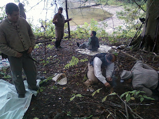 I believe the event served dinner, but we chose instead to make spaghetti.  I am not sure if spaghetti is period, but it was a good meal.  After the meal JR and Capt Evens held a speed loading training session, going over the load in nine times and providing tips on how to shoot faster.  A few of the 1st did not want to go through this since they were not concerned about entering a competition, but my take was that learning to shoot quicker, though the whole nine steps, improves your impression.  After all, the actual soldier could load and shoot through all nine steps in about twenty seconds.  I see many reenactors taking forty seconds or more, and they are not even using the ramrod.  I think the one person who gained the most from this was Pvt Zach Carte.  I believe during the practice he managed to get close to that 20 second mark.