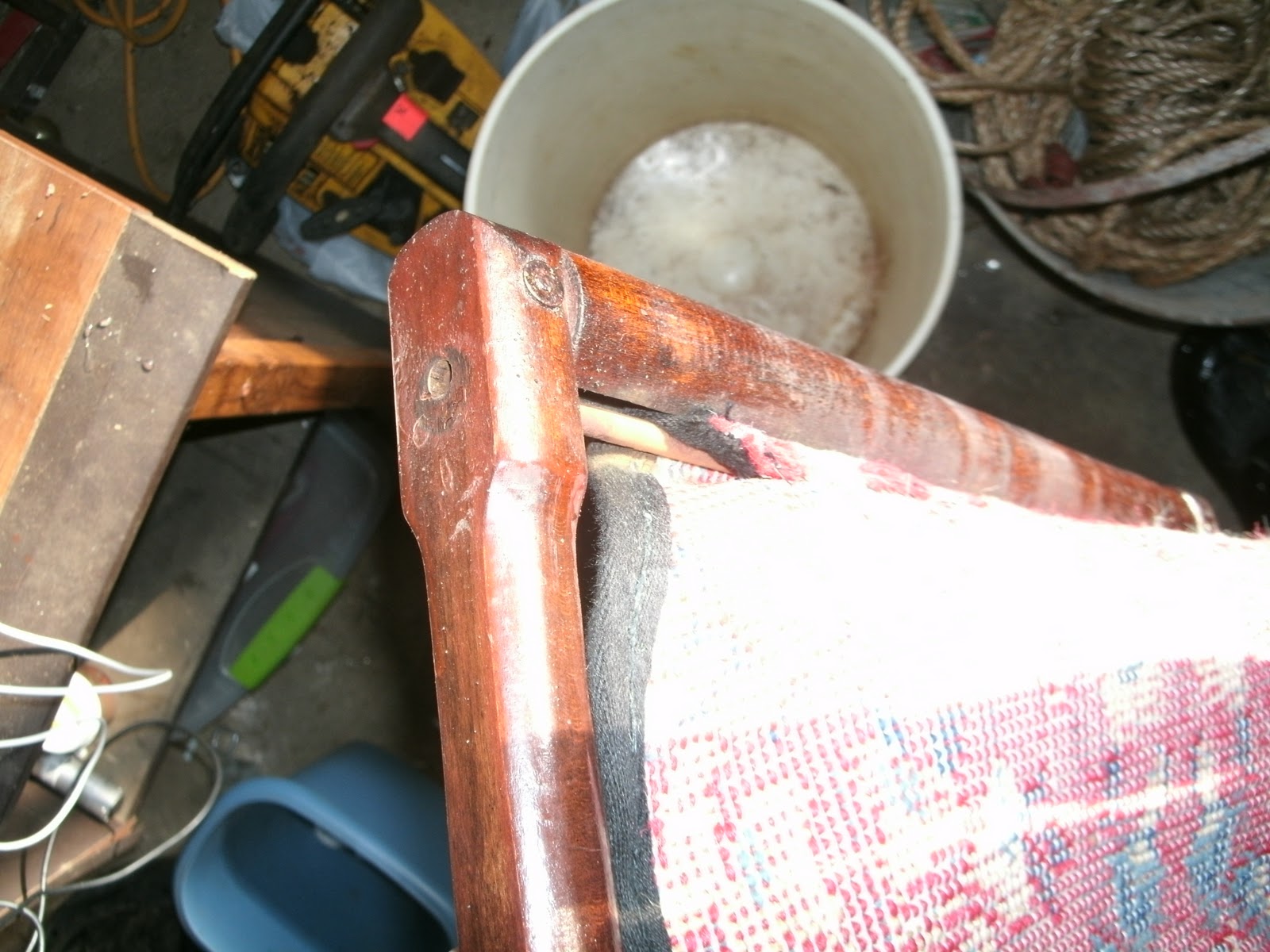 In restoring these chairs my goal was not to restore them to museum quality—simply to where I could use them in camp. This meant I was not concerned about the poor re-finishing—I could feel safe about that getting messed up in camp. When that got to the point that something needed done, then I could look at properly refinishing it, and correct the mistakes of the last person to finish it (although I am tempted to take the fingerprint to the police files to track down more of the history of the chairs).